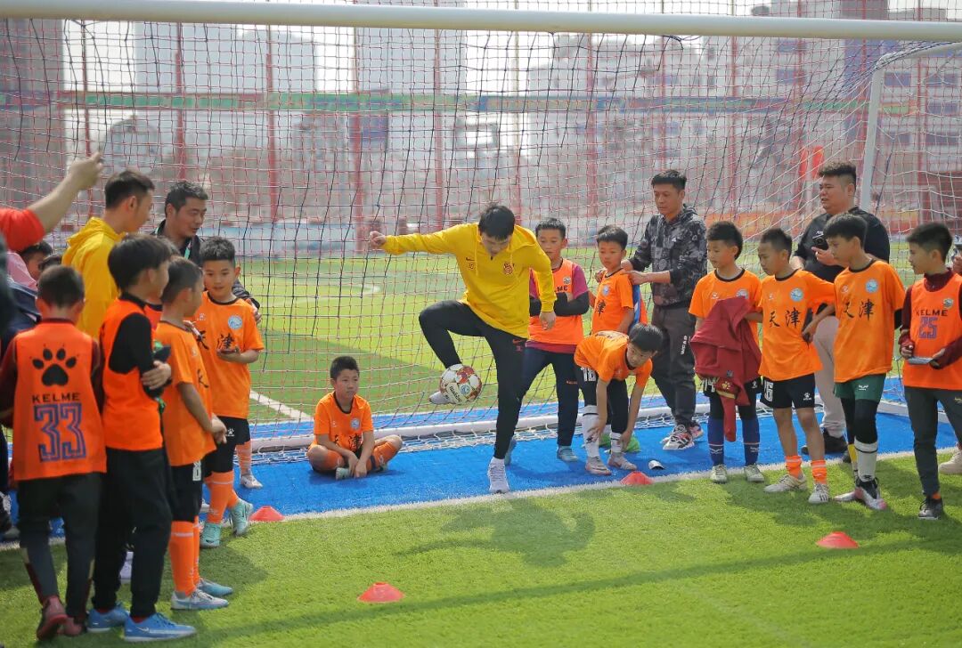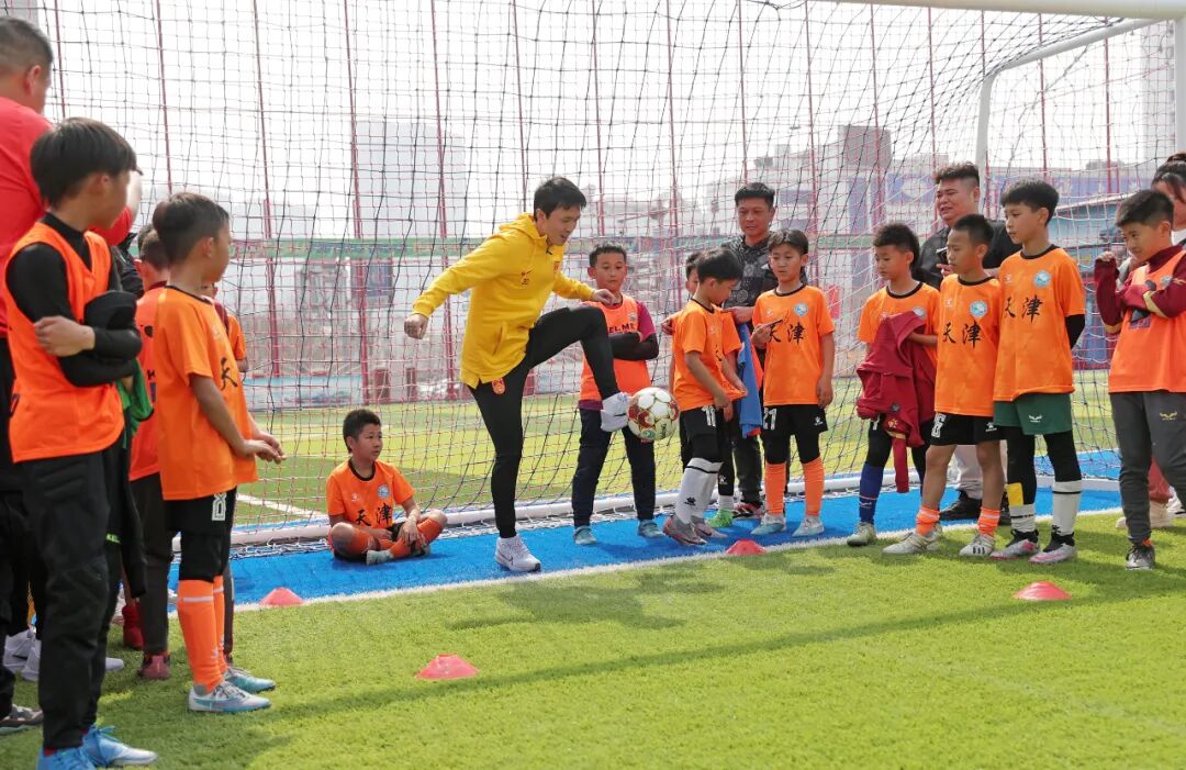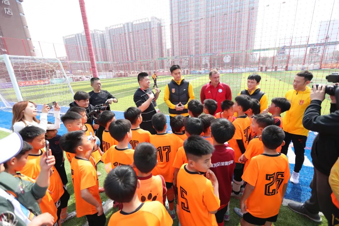 备战之余,3月23日中午,中国之队公益行在天津大吉利体育城-足球·梦剧场举办。活动现场,国家队助理教练陈涛,国脚蒋圣龙、王振澳和程进与来自天津足协青训中心U10梯队的25名小球员进行游戏互动。